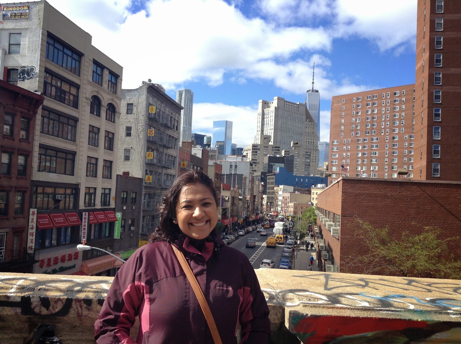 Uma das ruas em Chinatown, com a Freedom Tower (onde estavam as Torres Gêmeas do World Trade Center) ali ao fundo